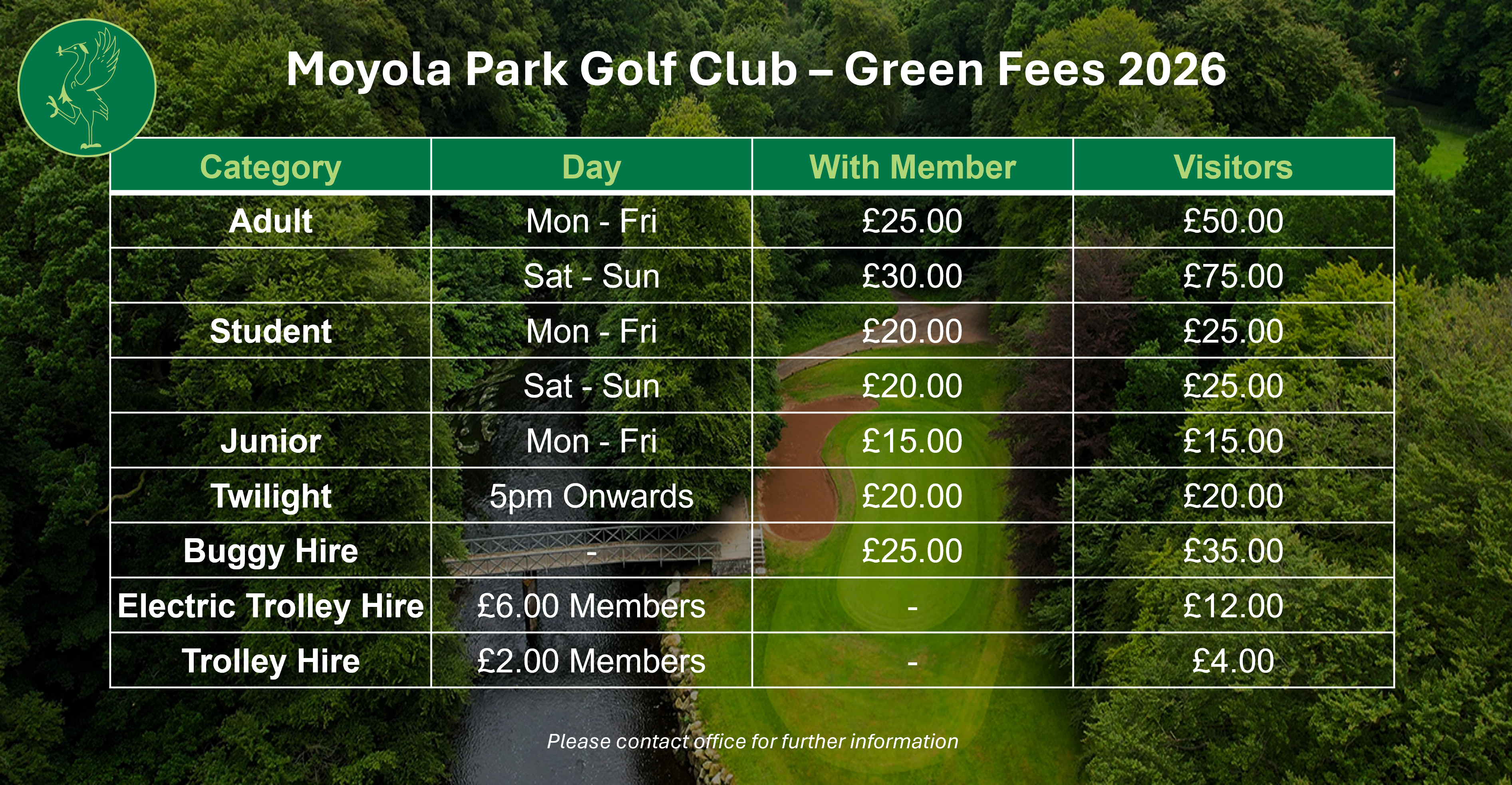If you would like to enquire about a tee time or any other course relating items, please contact the Pro Shop / Office.