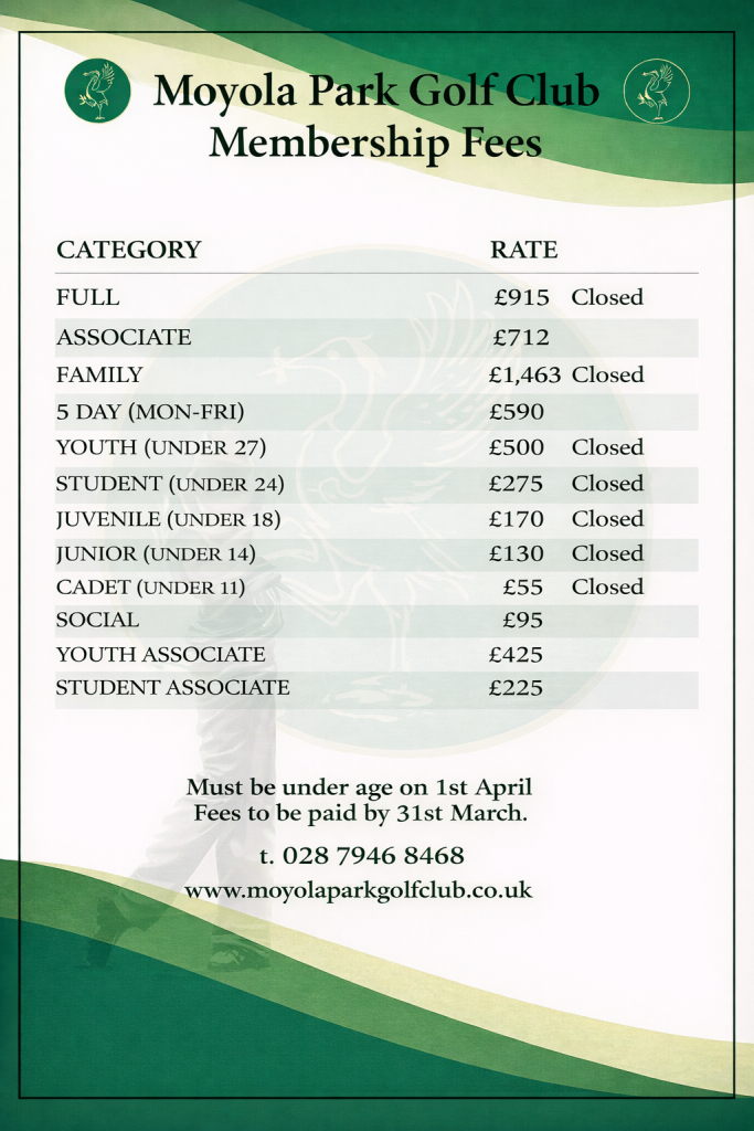 Applying for membership at Moyola Park Golf Club is quick and straightforward. You can choose to complete the application digitally or using a printed form.